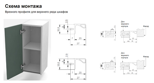 Врезной анодир.профиль для верхних баз Золото матовое16мм Премиум Лайн 4,1м