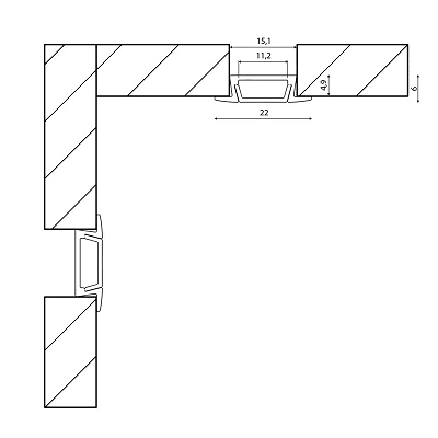 Профиль врезной 22*6*2000 Алюминий, ком-т с матовым экраном (10361)
