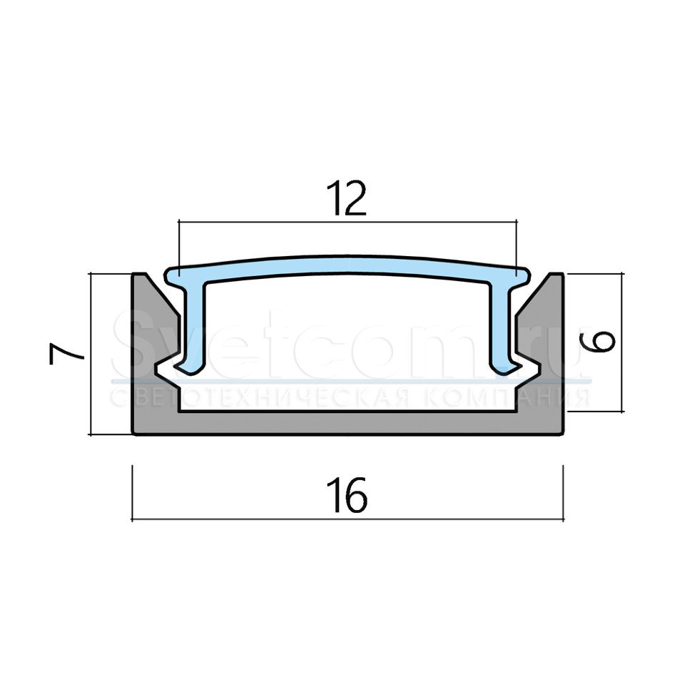 Профиль накладной 16*7*3000 Черный матовый, ком-т с матовым экраном(23847)