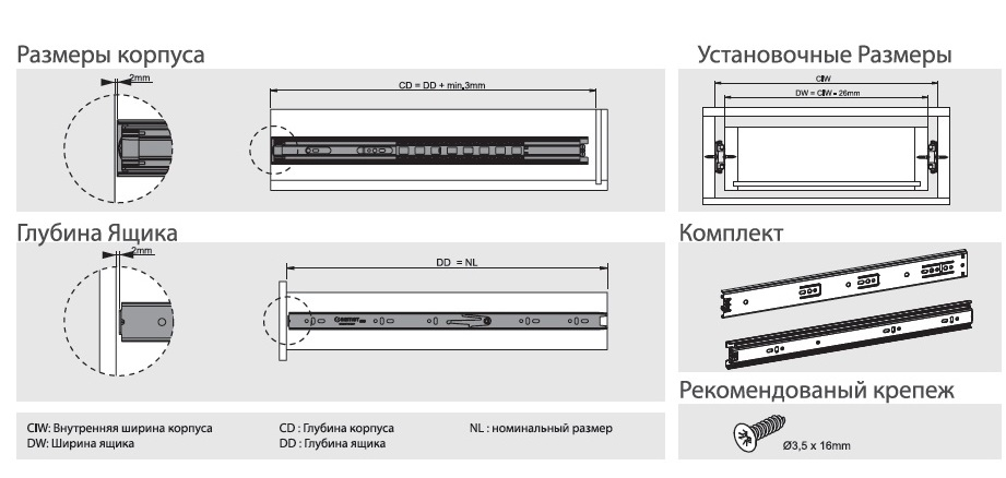 Совместимость с длиной ящика 185 мм и 700 мм