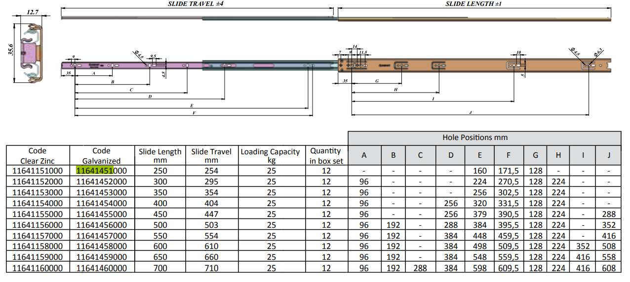 Одно удлинение (17, 27 мм) и полные выдвижные (35, 43, 46 мм) слайды