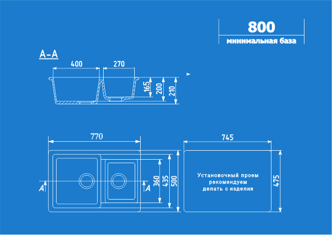 Мойка Ulgran U-505-307, прямоуг/2чаши 770*500, терракот
