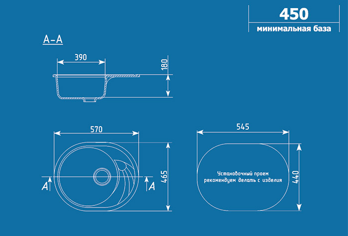 Мойка Ulgran U-403-331,овал 570*465, белый