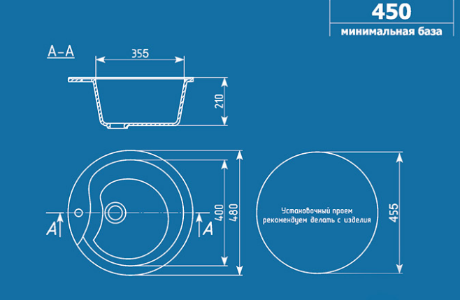 Установочный проем: ⌀ 455 mm