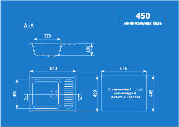 Минимальная база для изделия: 450 mm
