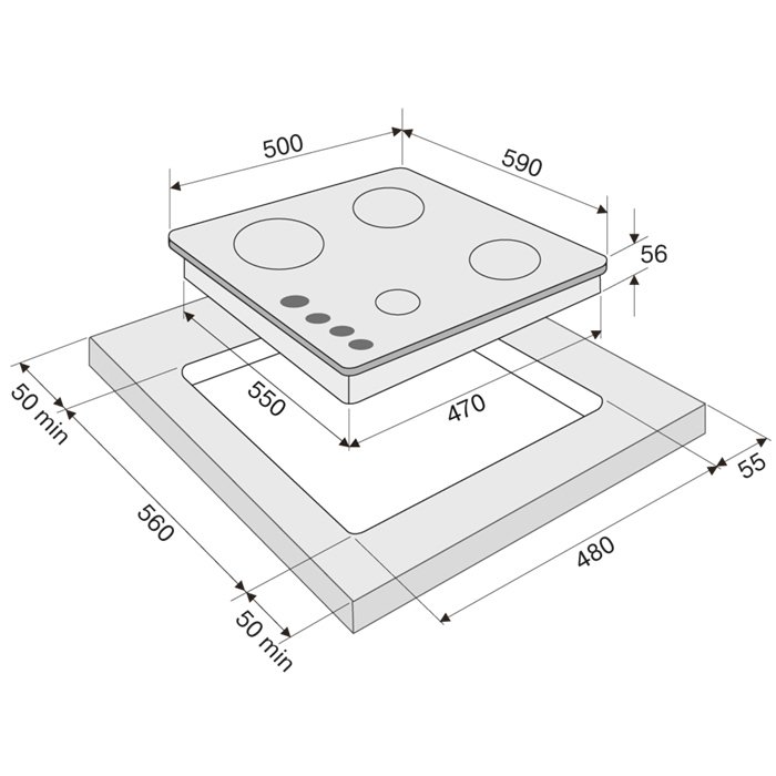Ширина встраивания, мм 600