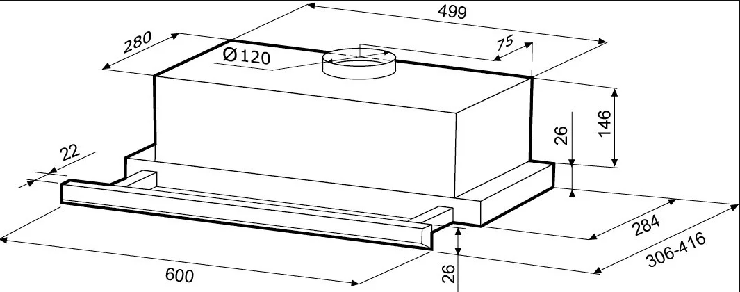 Вытяжка KRONA KAMILA SLIM 600 black/inox (1мотор) черный/нерж